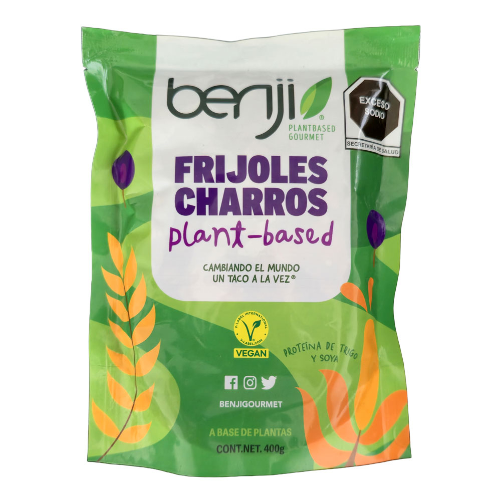 Agua, frijoles pintos, tipo salchicha Benji® (Proteína de trigo, agua, fécula de papa, cloruro de potasio, sal de mar, condimentos especias y colorante de betabel), tipo chorizo Benji® (Soya, agua, vinagre, cebolla, ajo, cloruro de potasio, sal de mar y especias), tipo jamón Benji® (Proteína de trigo, agua, fécula de papa, cloruro de potasio, sal de mar, condimentos especias y colorante de betabel), sal de mar y cloruro de calcio. Contiene Trigo (Gluten) y soya.
